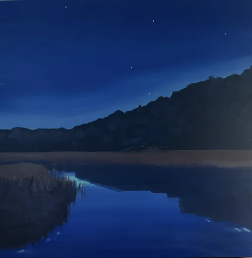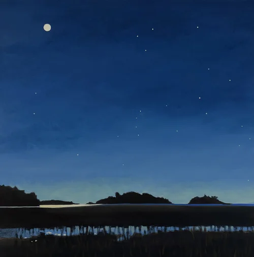 The 20" x 20" paintings of the "In the Moment" series depict evocative memories, and reflect life’s impermanence. Often moments of transporting quiet solitude, they are distillations of a scene, and convey the experience of the dreamlike, magical and transcendent.